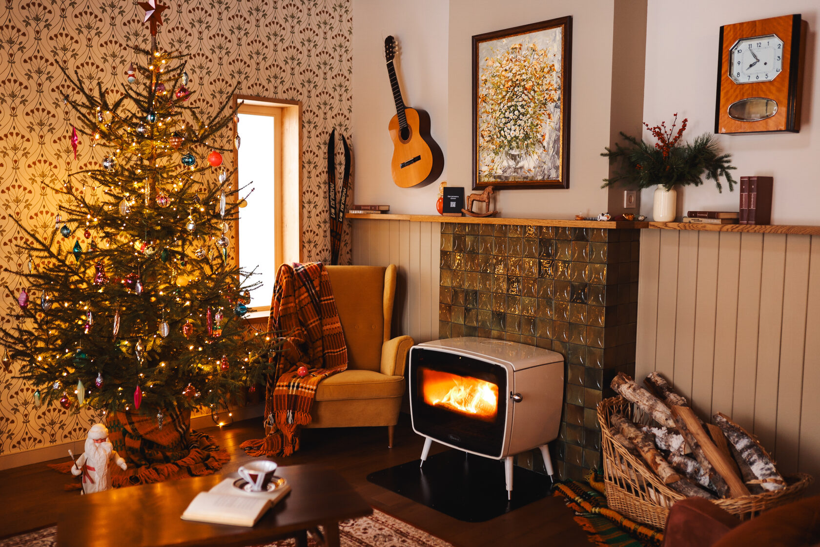 Добро пожаловать на дачу в стиле mid-century. Сердце дома — печь-камин Dovre.